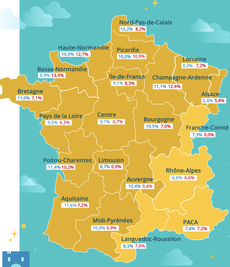 Ainsi en Ile de France où le marché bénéficie largement du retour d’acheteurs plus aisés et de ménages ayant au préalable réalisé la revente d’un autre bien immobilier, disposant d’un apport personnel élevé leur permettant de s’affranchir des contraintes imposées par la Banque de France, les ventes ont progressé de près de 15 %. Alors que dans trois régions (Aquitaine, Nord-Pas de Calais et PACA) où