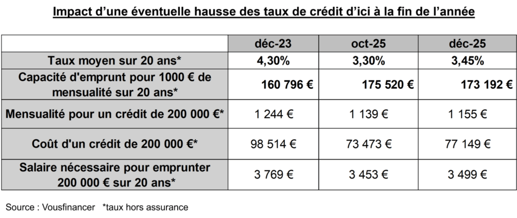 « Pour autant actuellement, Vousfinancer maintient son scénario de hausse très modérée des taux, avec des taux moyens de dépassant pas 3,50 % en fin d’année. Une remontée donc limitée et sans réel impact sur la capacité d’emprunt des futurs acquéreurs… », conclut Julie Bachet.