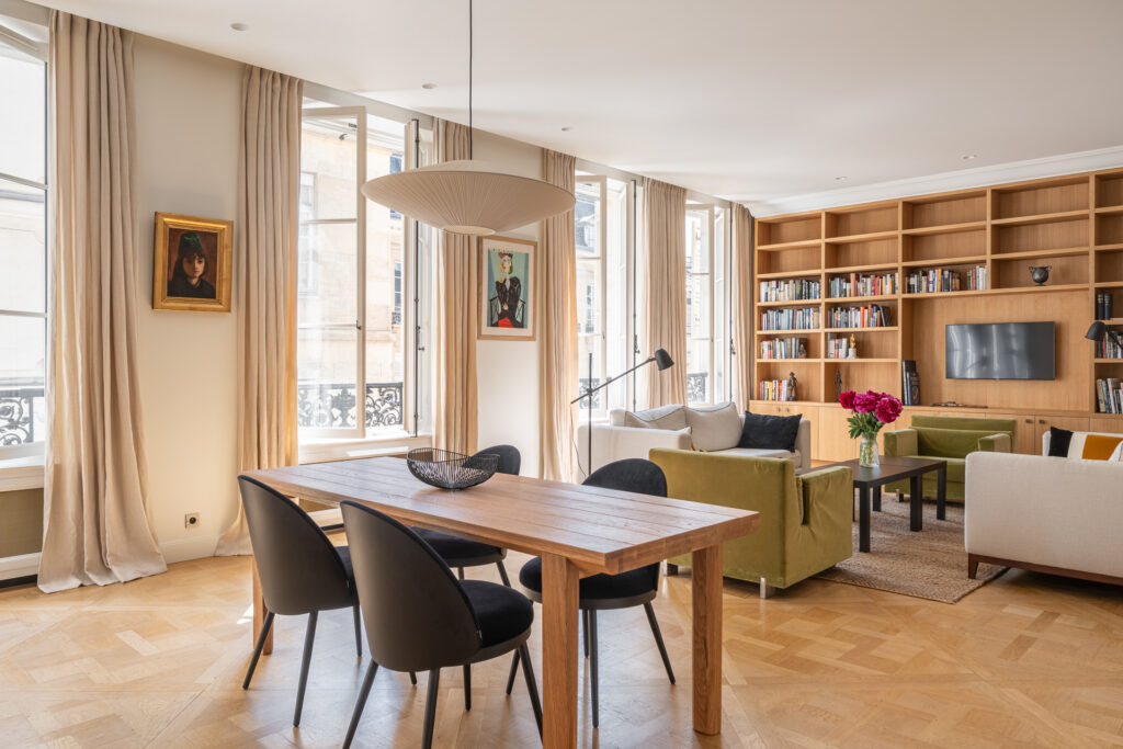 Ce superbe appartement de réception de 153 m² est situé à l’étage noble d’un bel immeuble en pierre de taille du XIXᵉ siècle, dans le prestigieux quartier Sèvres-Babylone.