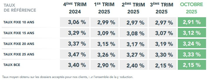 - 3,12 % sur 15 ans (+2 centièmes par rapport à septembre 2025)