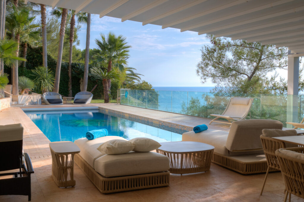 Les espaces de réception, la cuisine d’été, la cave à vin et les trois chambres supplémentaires invitent à la convivialité et à la détente, tandis que les extérieurs rivalisent de beauté : piscine à débordement, pool house de 60 m², espace bien-être avec hammam et sauna, terrasses ensoleillées et accès direct à la mer.