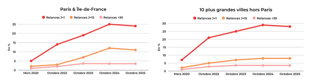 L’écart est encore plus marqué sur les relances précoces. Une sélection stricte des candidats et un suivi quotidien s’avèrent déterminants pour sécuriser les revenus locatifs.