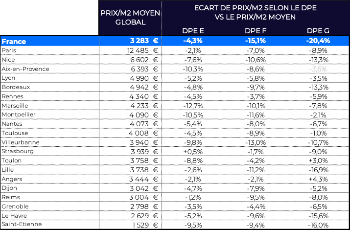 Effets du DPE sur la valorisation des biens à la vente et à la location dans les 20 plus grandes villes*