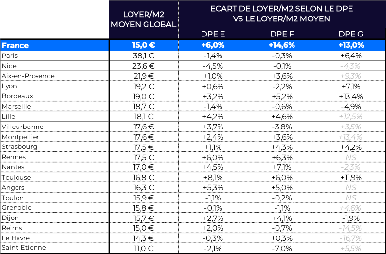 À l’inverse, les loyers/m² restent orientés à la hausse, y compris – et parfois surtout – pour les logements F et G. Malgré leur faible performance énergétique, ces biens conservent une attractivité locative liée à la tension persistante dans de nombreuses zones. Dans plusieurs villes, les loyers des passoires thermiques progressent même plus vite que ceux des biens mieux classés, portés par une demande soutenue, une offre insuffisante et l’anticipation des restrictions de mise en location, qui raréfient progressivement les biens disponibles.