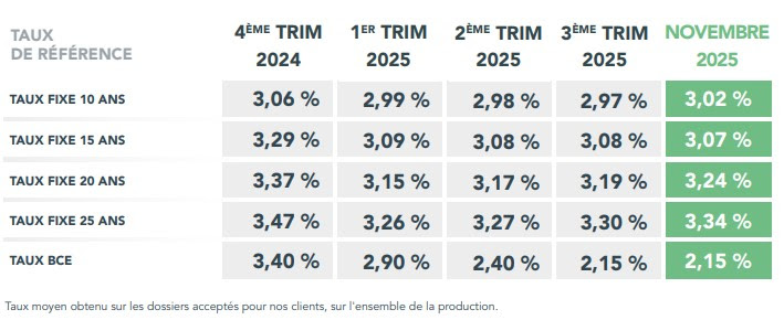 - 3,07 % sur 15 ans (-5 centièmes par rapport à octobre 2025)