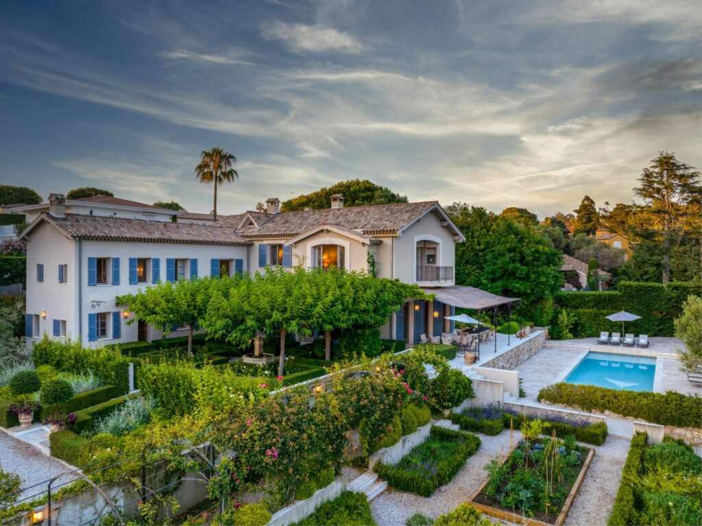 Idéalement située sur le versant ouest ensoleillé du Cap d’Antibes, cette ancienne ferme de roses d’environ 600 m² est devenue bastide luxueuse, nichée dans un parc méditerranéen de 5 000 m² avec une maison d’invités.