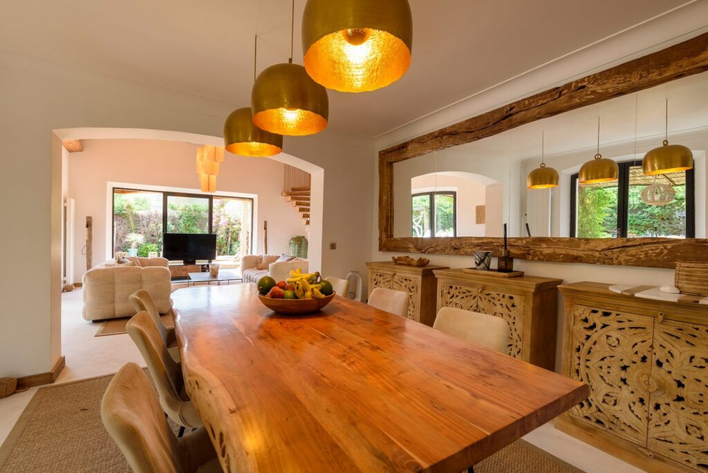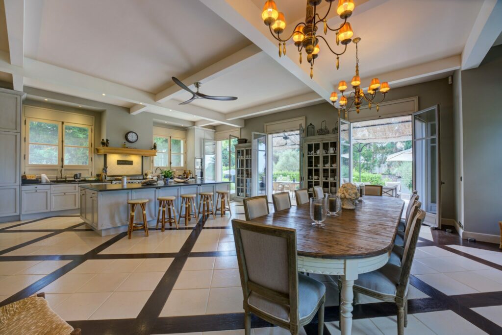 Lumineux et tourné vers la piscine, le salon s’impose naturellement comme le cœur de la maison. En émaux de nacre, la piscine baigne ses abords de doux reflets turquoises, comme un bassin naturel. Le jardin paysager de près de 1 900 m², véritable ode à la Provence avec ses essences méditerranéennes, dispose également d’un terrain de pétanque et de coins détente ombragés.