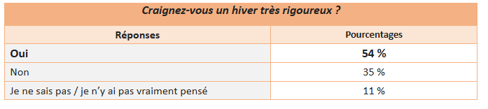 À l’approche de l’hiver, les avis sont très partagés sur la rigueur ou la douceur de la saison. Ainsi, 54 % des Français envisagent un hiver très rigoureux. De l’autre côté, 35 % se déclarent totalement sereins, et 11 % n’y ont pas encore vraiment pensé.