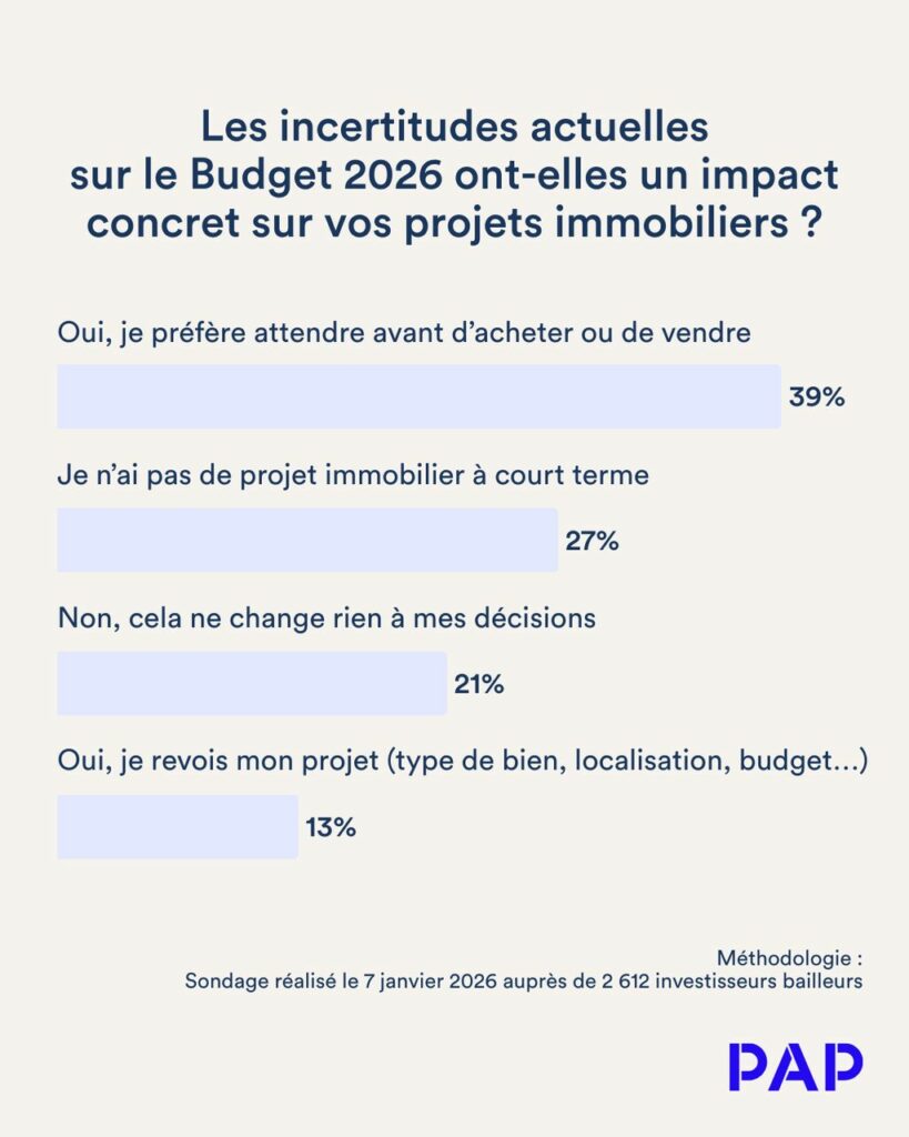 Le Budget 2026 n’est pas encore voté, mais ses orientations suffisent déjà à freiner les projets immobiliers. Lors d’un atelier en ligne organisé par Pap le 7 janvier, plus de 2 600 investisseurs bailleurs ont été interrogés sur l’impact concret de ces incertitudes.