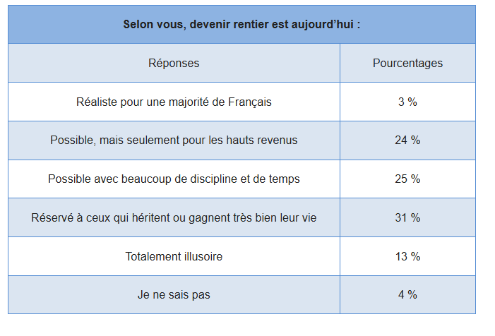 Pour près d’un Français sur trois, devenir rentier est jugé irréalisable compte tenu de sa situation actuelle.