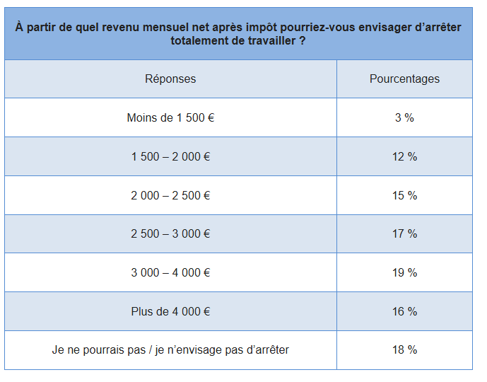 Des seuils de revenus élevés pour arrêter totalement de travailler