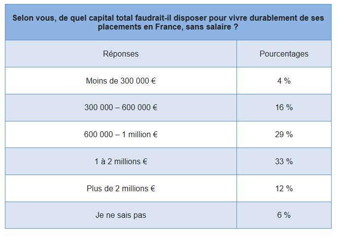 Dans l’esprit des Français, vivre de ses placements suppose majoritairement de disposer d’au moins un million d’euros.