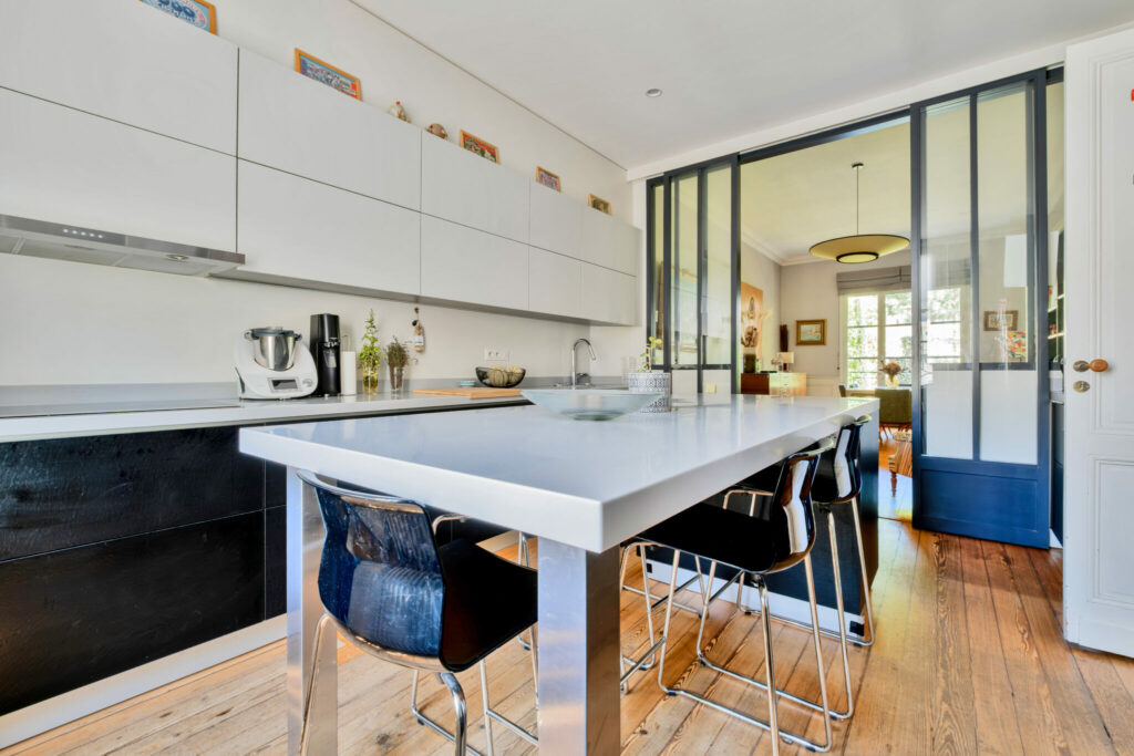 Développant 315 m², la maison principale s’ouvre sur une entrée desservant un espace bureau et un vestiaire, puis un vaste séjour avec cuisine semi-ouverte, prolongé par un jardin arboré de 180 m².