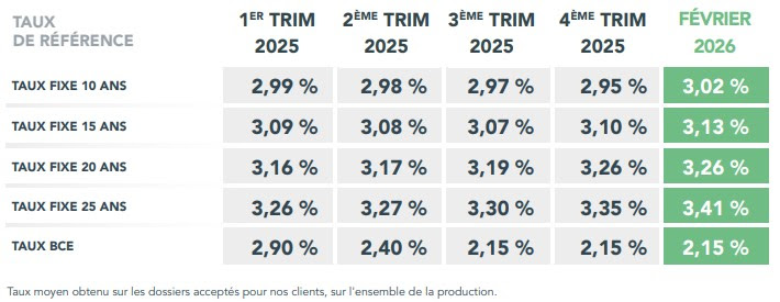 En février 2026, les taux de crédit se sont stabilisés et ont même reculé légèrement selon CAFPI, redonnant ainsi un peu de pouvoir d’achat aux emprunteurs.