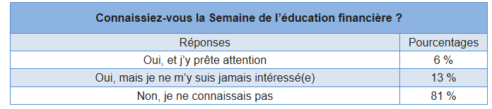 Enfin, 81 % déclarent ne pas connaître la Semaine de l’éducation financière. Un paradoxe dans un contexte où la demande de repères semble forte.