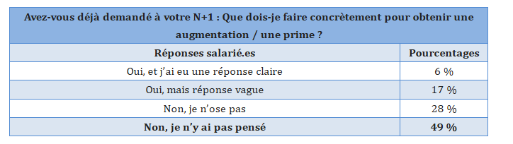 77 % n’ont jamais demandé ce qu’ils devaient faire pour avoir une augmentation