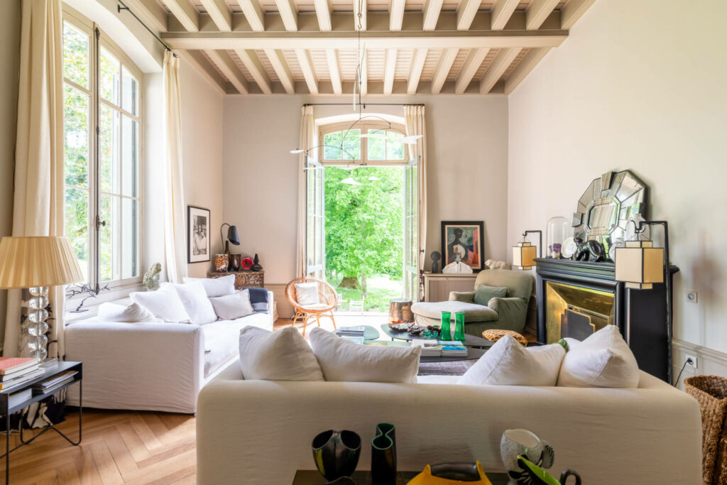 Développant environ 350 m² de plain-pied, la maison principale séduit par ses volumes spectaculaires, sa hauteur sous plafond de 4 mètres et sa distribution inspirée des codes haussmanniens.