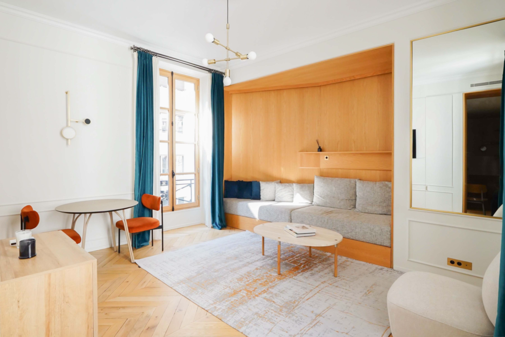 Le second, plus compact, est d’environ 40 m² avec 1 chambre. Entièrement rénové, traversant, et situé au 3ème étage par escalier, il offre une lecture plus accessible de ce même cadre emblématique, avec un agencement optimisé, une belle hauteur sous plafond et une lumière naturelle omniprésente.
